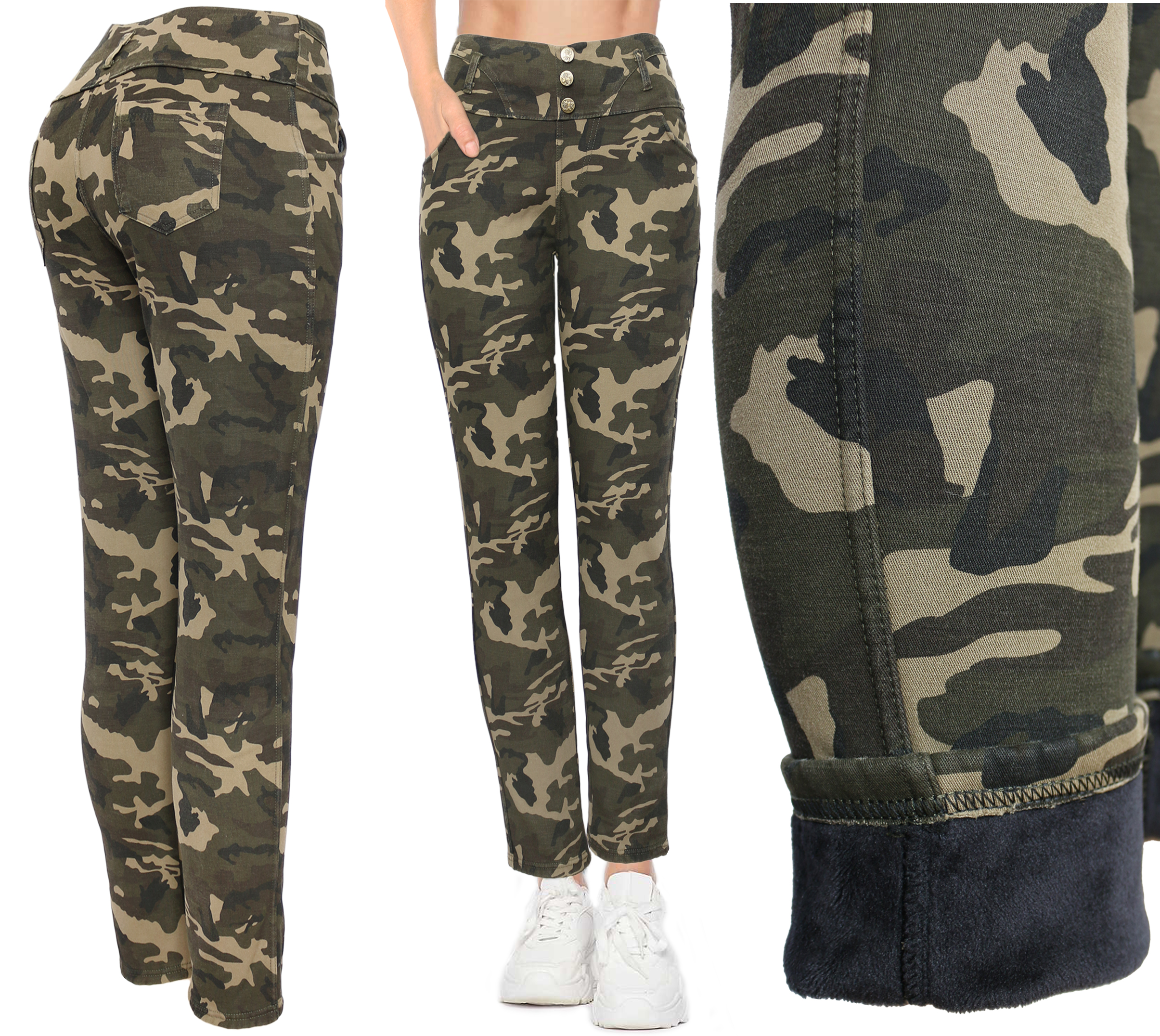 Those pants will keep you warm during winter cold days. Skinny cut shows your curvy feminine figure shape. Comfort stretch denim and cozy fleece lined bring you relaxing freedom. Women Winter Jeans Pants Fleece lined - lining is super soft and comfortable makes this Jeggings you next favorite winter pants. Warm Thermal in cold freeze snow weather. Camouflage design is great for outdoor adventure as hunting pants, fishing pants or causal over the town pants.