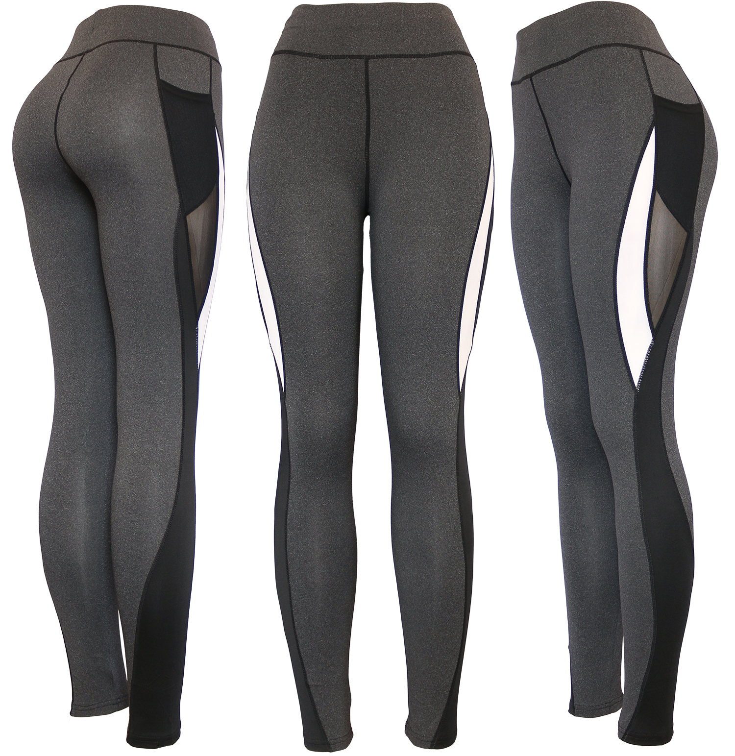 Our women’s yoga pants leggings have two side pockets for your phone, keys, or credit cards. These soft and stretchy pants are great for yoga, working out, hiking, running, or any indoor and outdoor activities. Those active wear leggings are made out of 90% Polyester, 10% Spandex, and an inseam of 28” (29” for size Large). Stretchy fabric gym leggings.