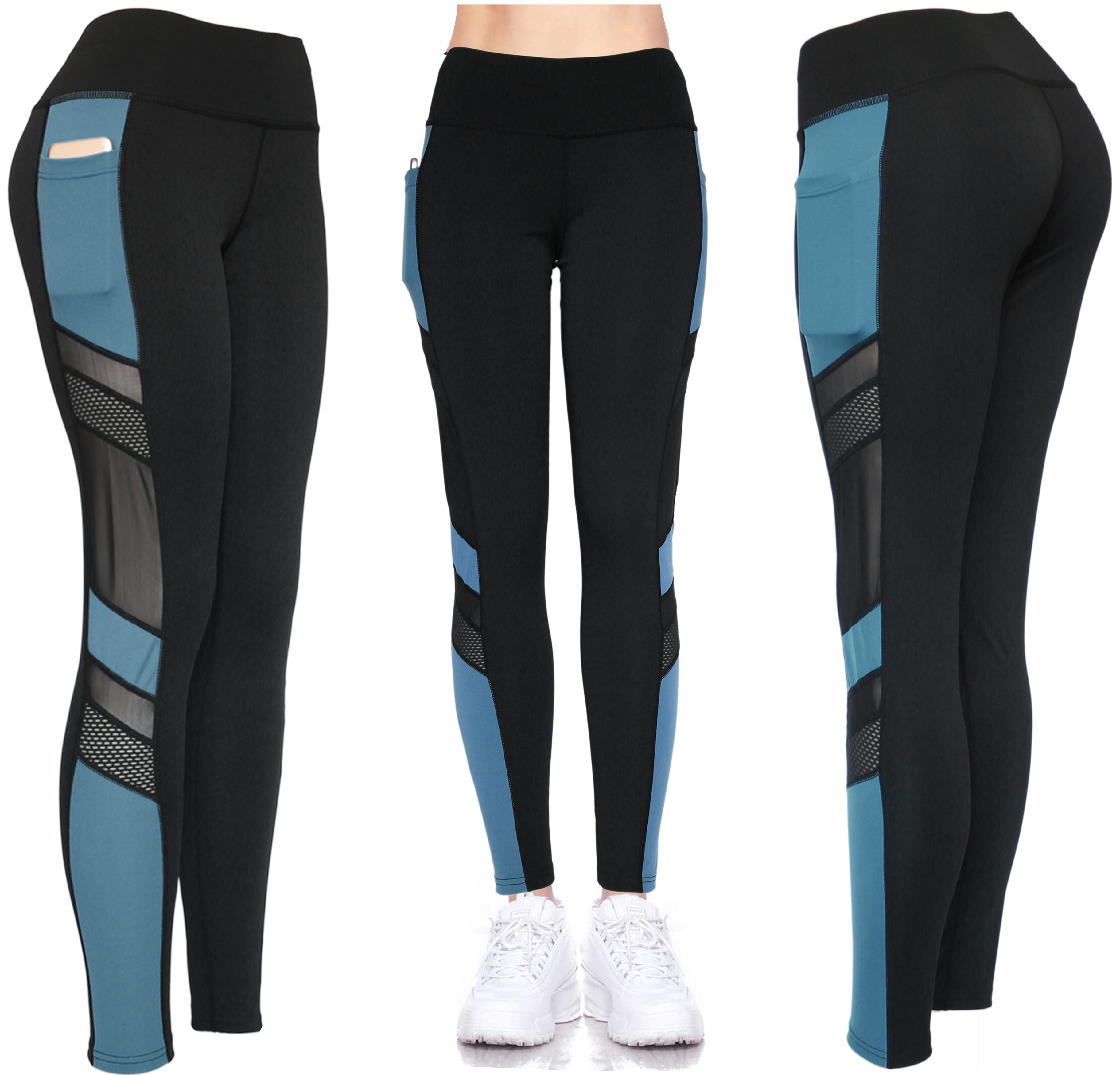 Indigo Mesh Workout Leggings with Pockets High Waist Athletic Active Pants
