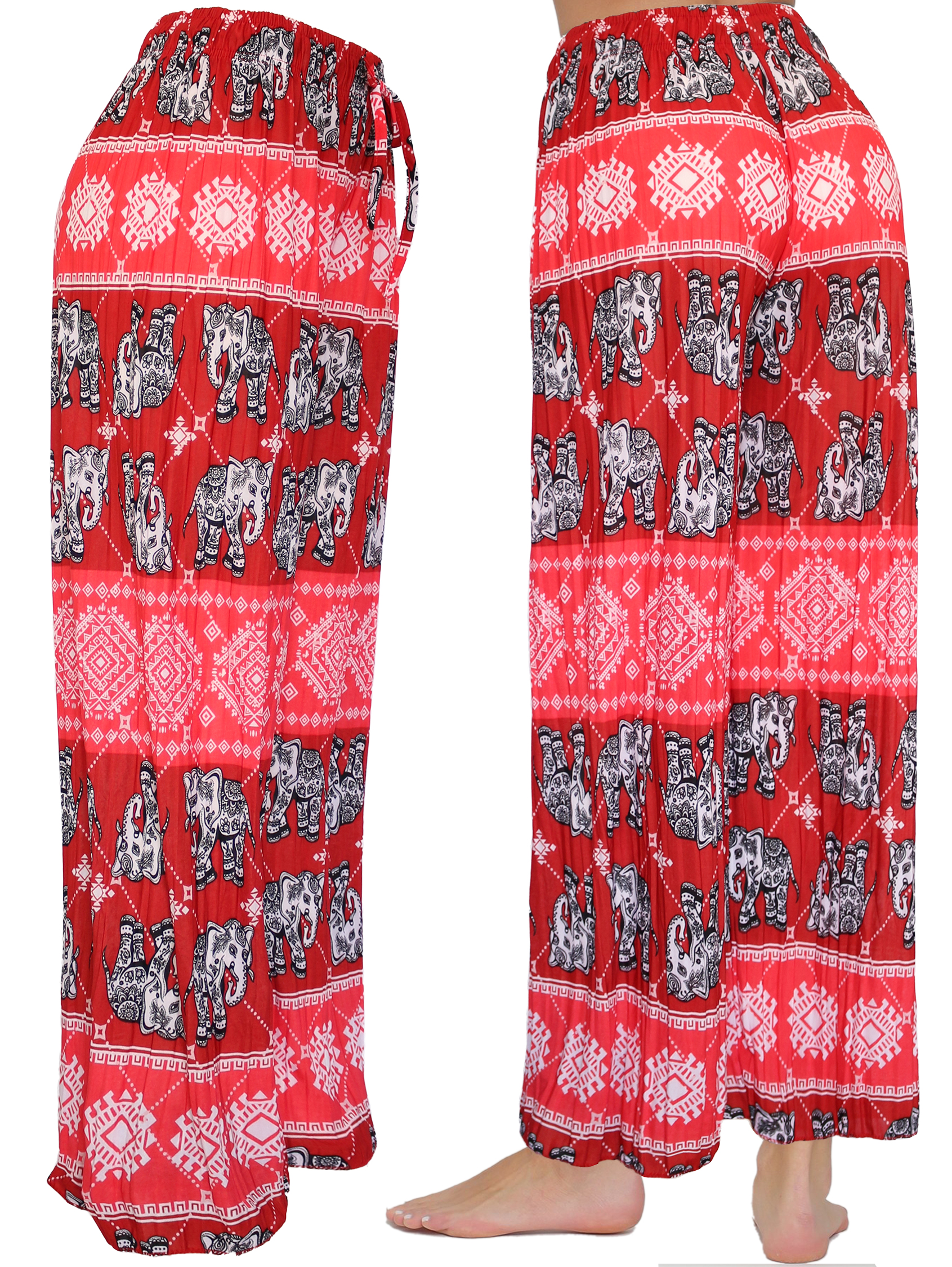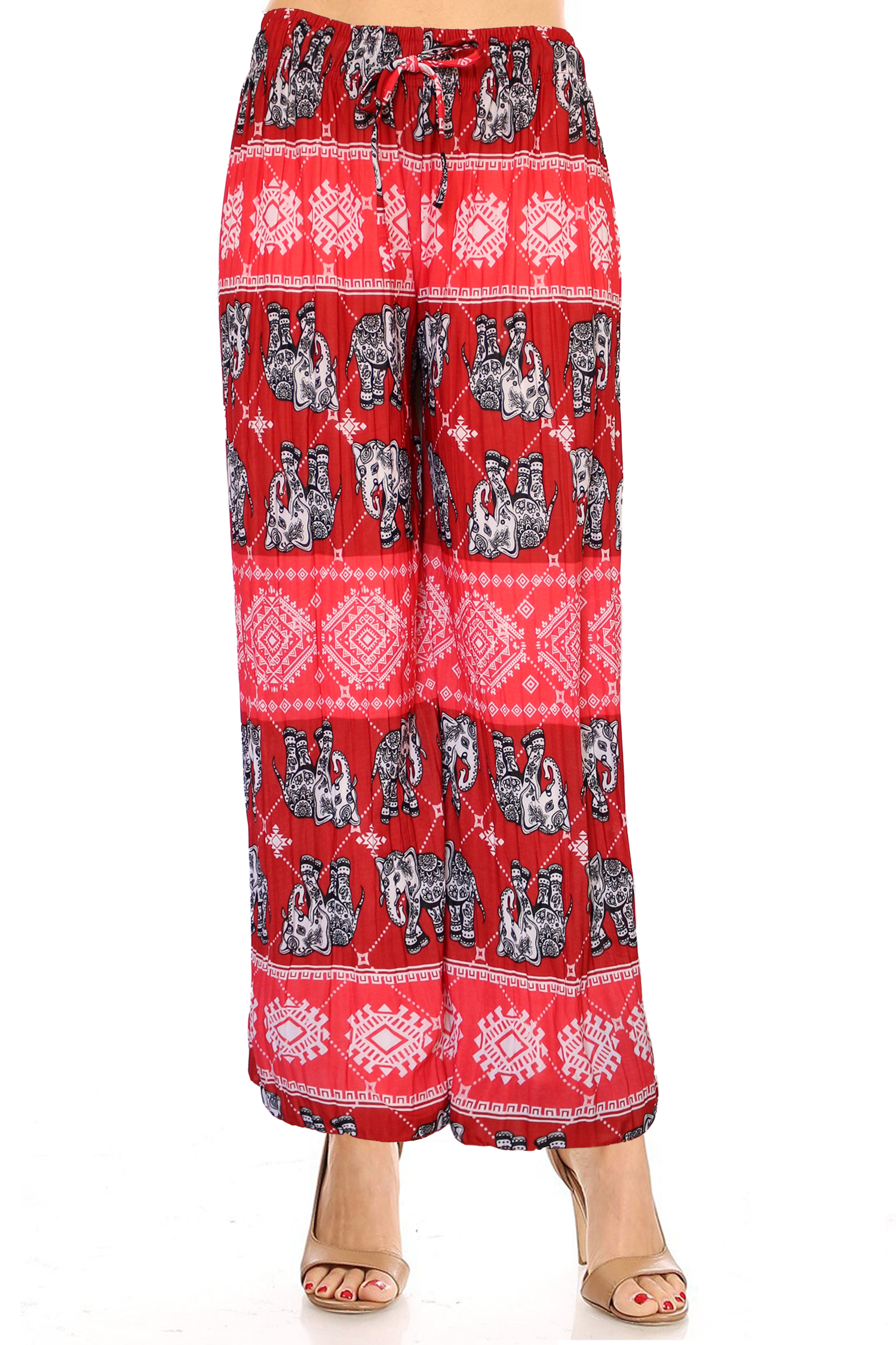 Red Elephant Pleated Palazzo Wide Leg Causal Pants