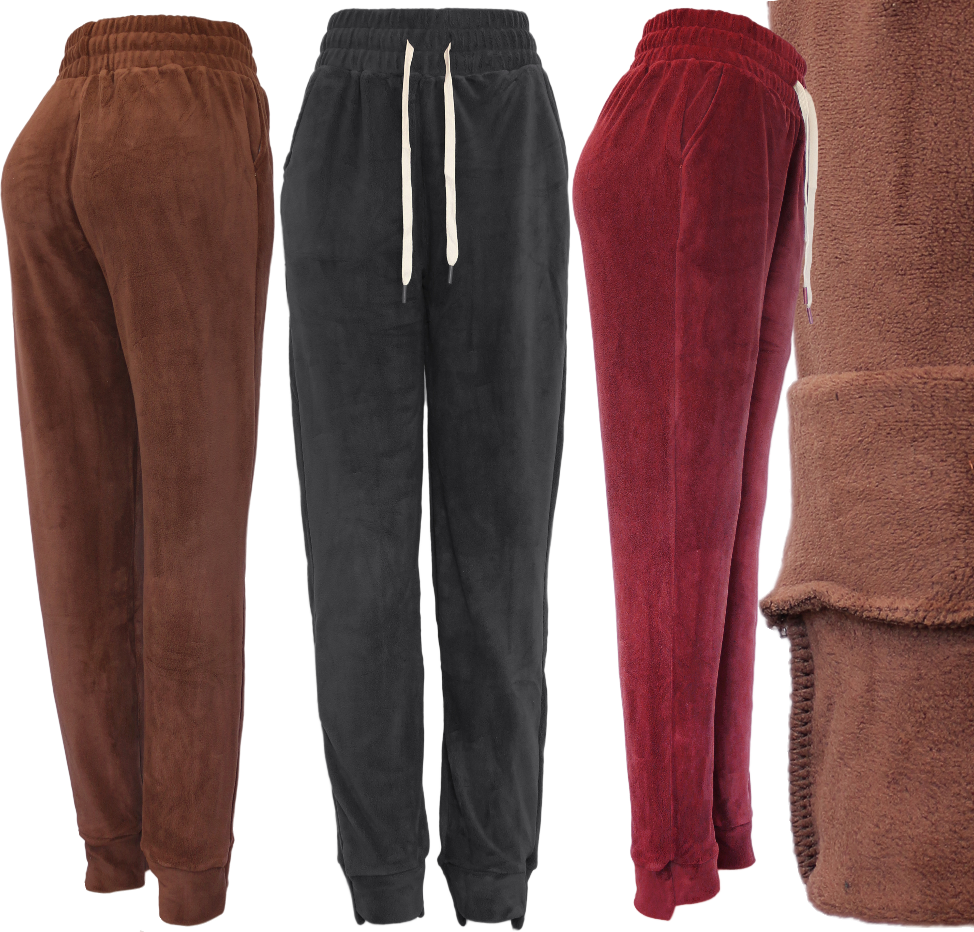 Our super soft and comfortable fleece sweatpants are made out of 65% Cotton and 35% Polyester . The fabric feels amazing to the touch. It is a great choice of clothing for fall and winter for ladies in all ages that loves the comfort. Fleece lined sweatpants will keep you warm in cold weather. You can easily pull them over your legging to run to the gym in cold winter weather. Pants are very stretchy and you can regulate and adjust tightness with the drawstring waistband. Store your belongings in two sides pockets. Bottom cuffed freely fixed to the position of the leg.