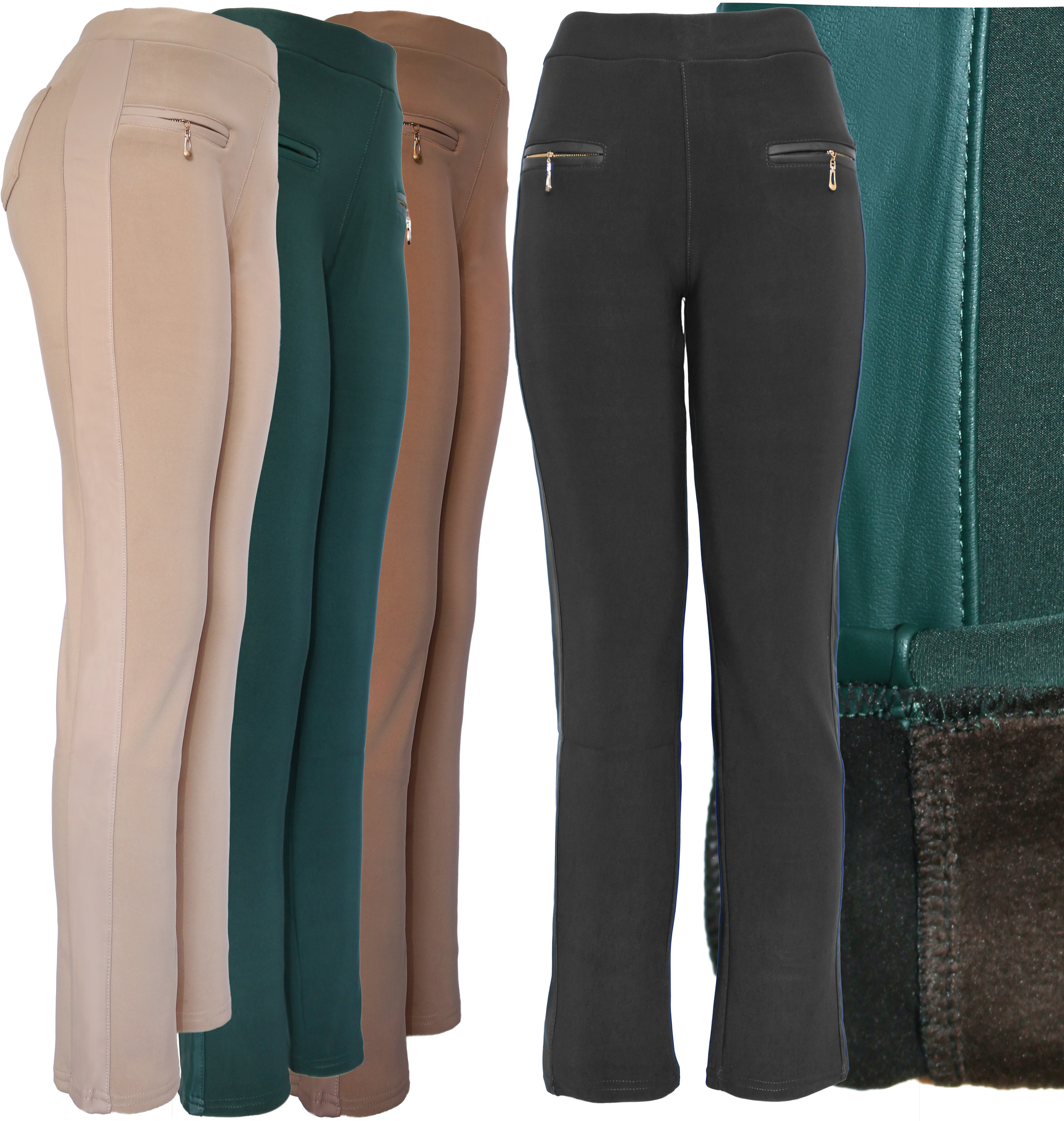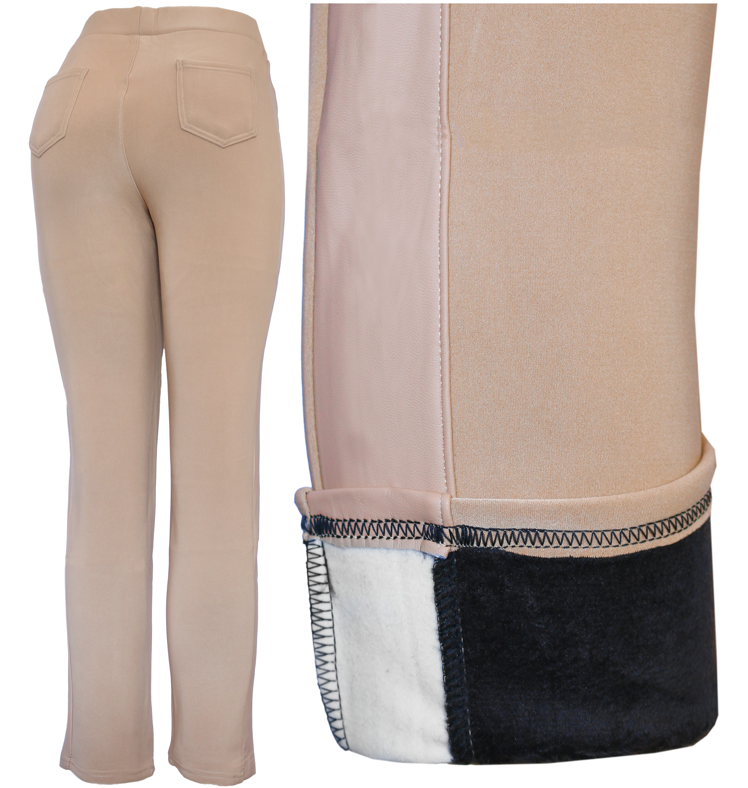 Keep yourself stylish and fashionable yet warm and cozy with our fleece lined leggings. Those spliced leggings features faux Non functional front zippers and 2 inch elastic waistband. Features functional back pockets. Front sides is covered with faux leather and back is solid black stretchy material. Wear them for any occasion as causal pants or girls night out.